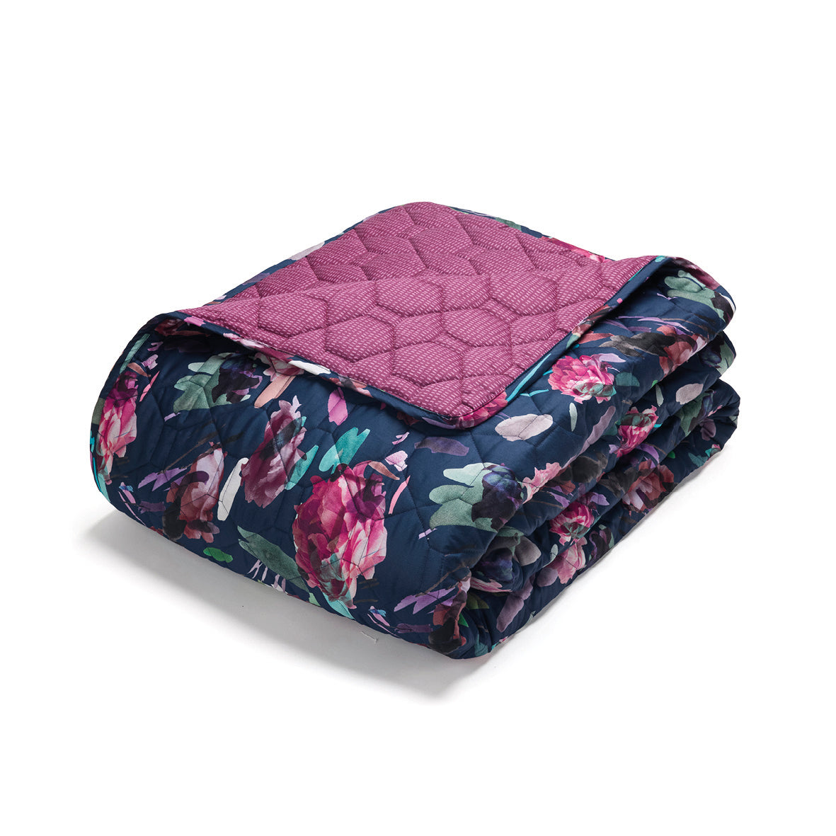 Couvre-lit satin de coton Arty flowers Bleu foncé - 220 x 250 cm