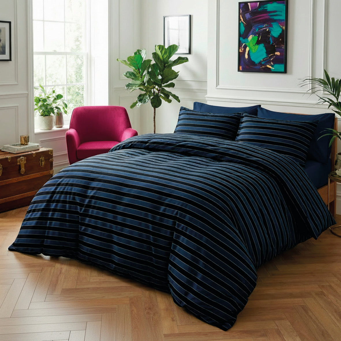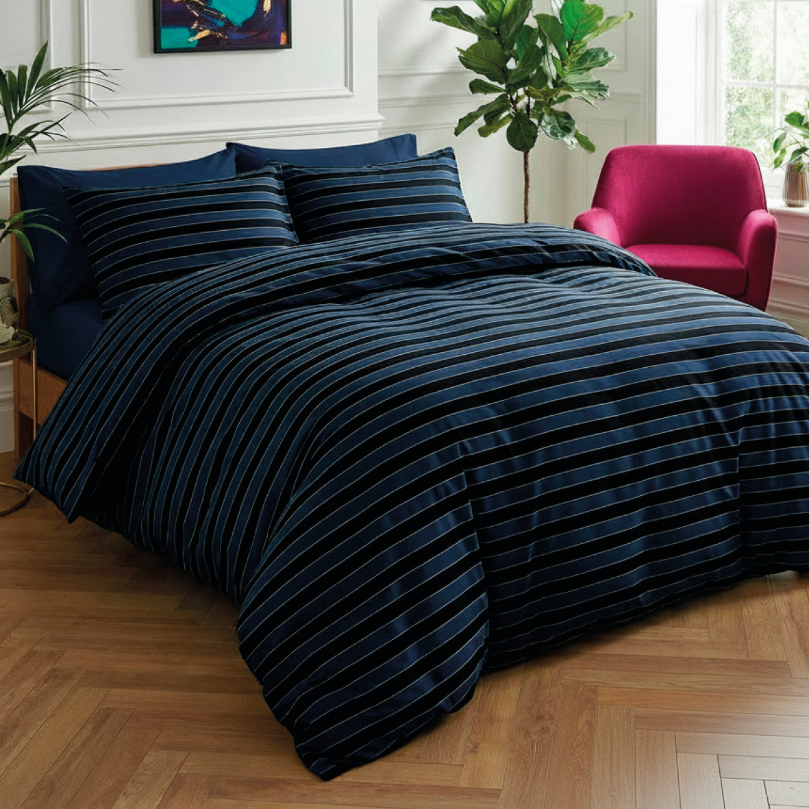 Couvre-lit satin de coton Eclipse Bleu foncé - 220 x 250 cm - 220 x 250 cm