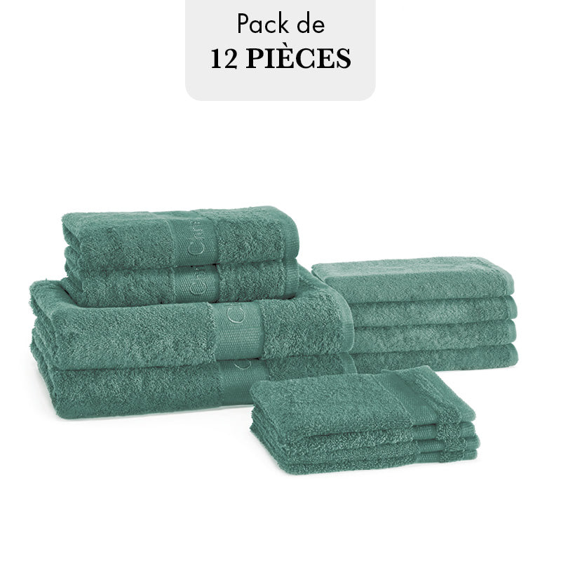 HANDTUCHSET AUS 100% GEKÄMMTER BAUMWOLLE - 12 STÜCK - GRÜN