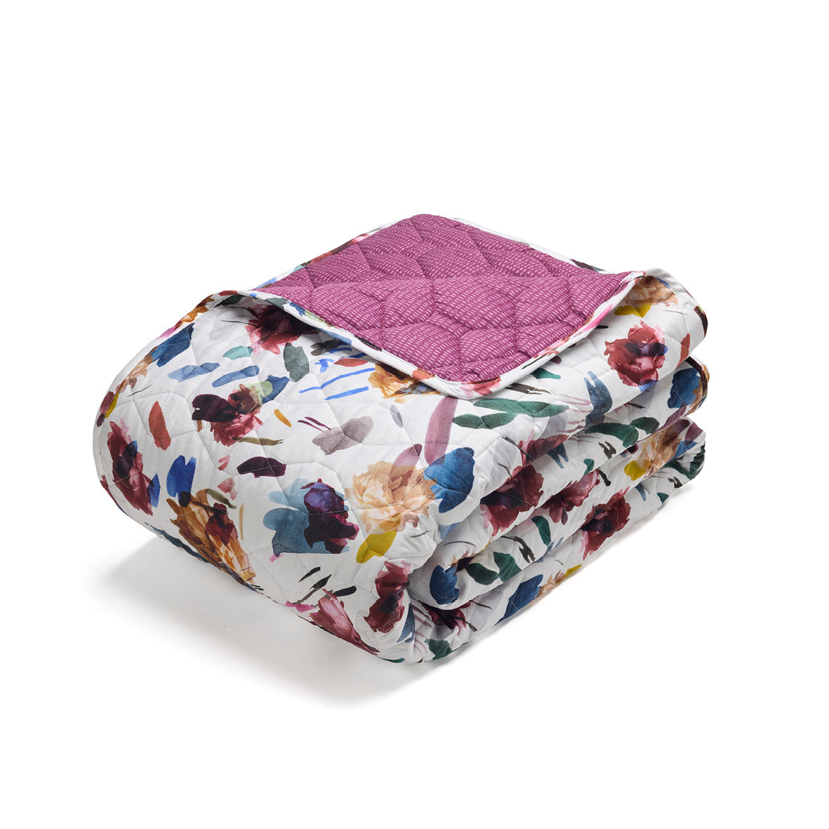 Bedspread cotton satin Arty flowers White - 220 x 250 cm