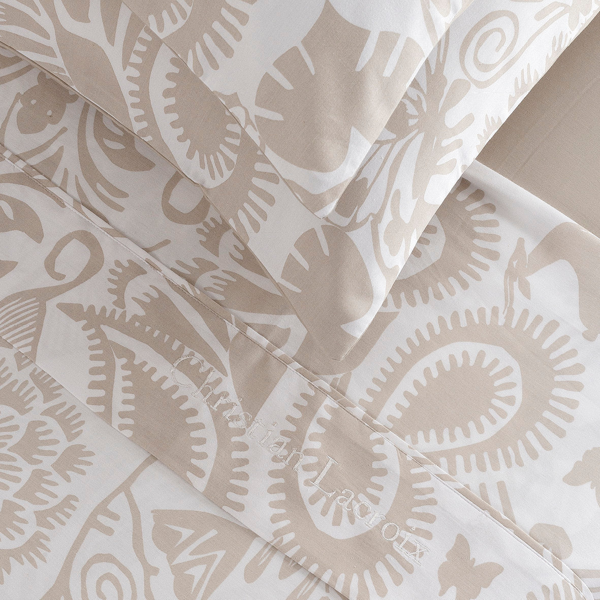 Sheet set: fitted sheet, flat sheet, pillowcase(s) in cotton satin - design: Love Stories Taupe